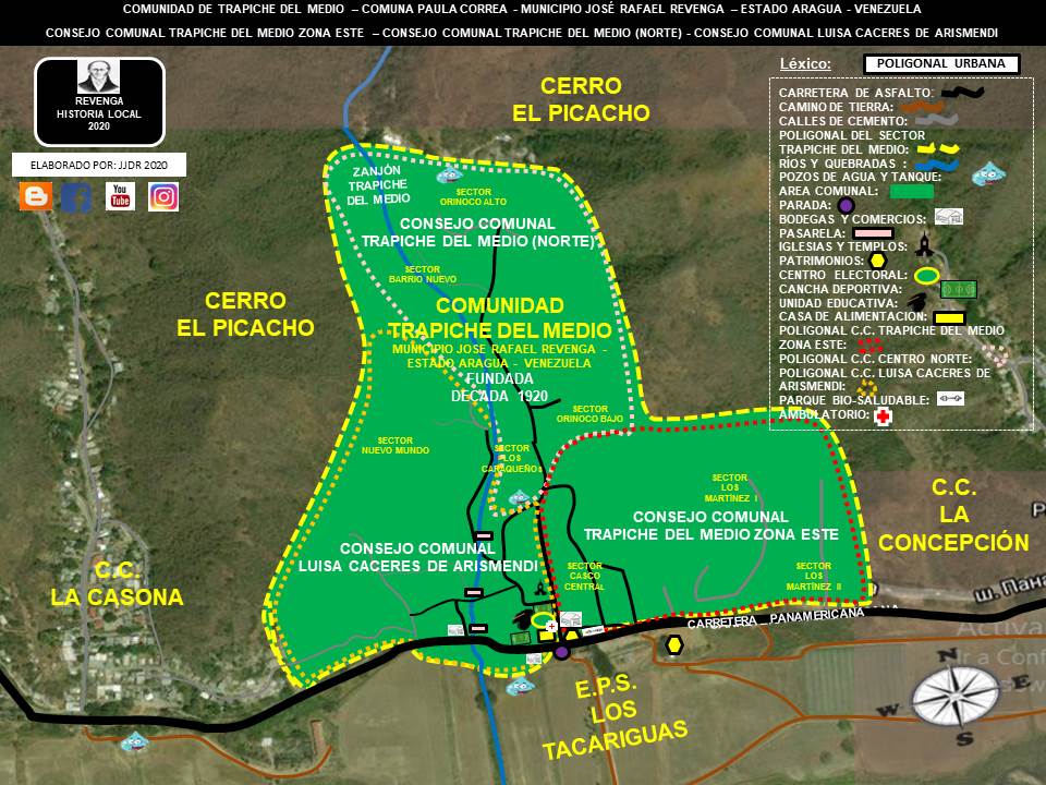 Este mapa (cartografía comunal), es síntesis de la caracterización del trabajo de la comunidad del Consejo Comunal Trapiche del Medio (Norte) y el equipo de Somos Venezuela.